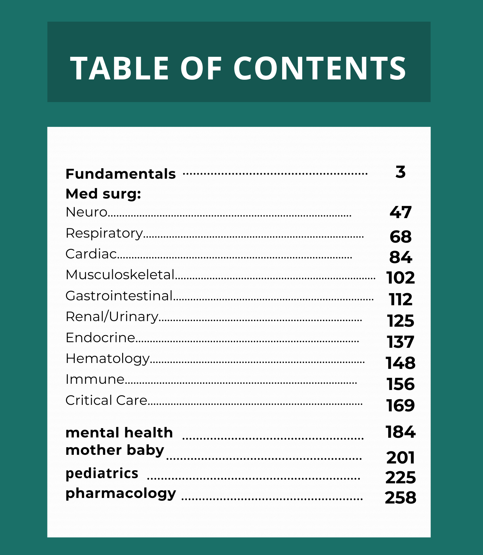 You don’t need to pull another all-nighter just to score average again. This guide breaks down what actually matters.It covers 15 essential topics like pharmacology, pediatrics, OB, mental health, and critical care, all designed to help you excel in your finals and clinicals. With clear,concise content that simplify complex concepts,